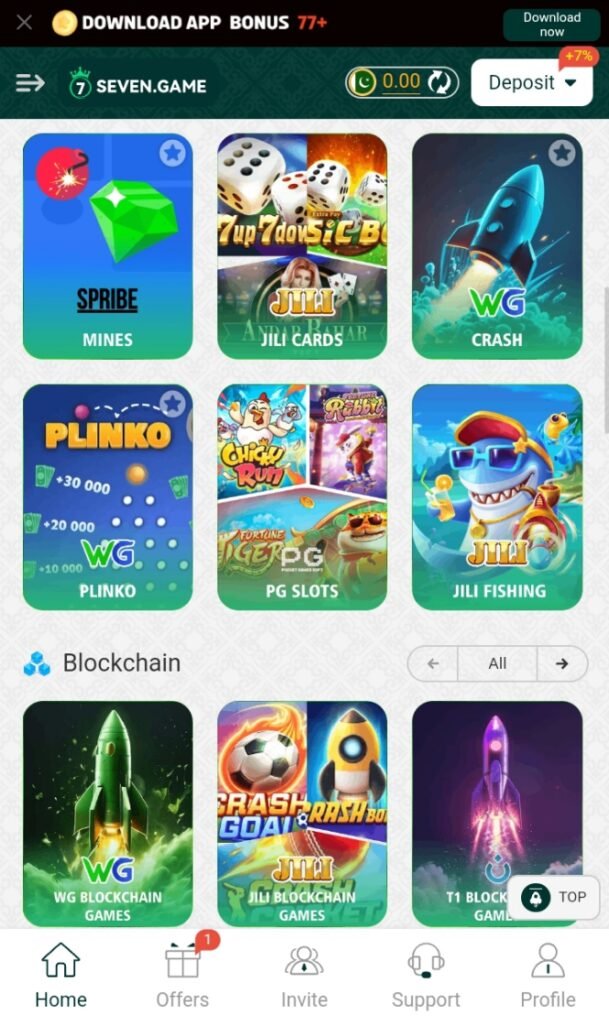 SEVEN.GAME has a clean and simple interface. Even beginners can easily navigate the app without confusion. The dashboard displays available games, bonuses, and wallet balance clearly.
